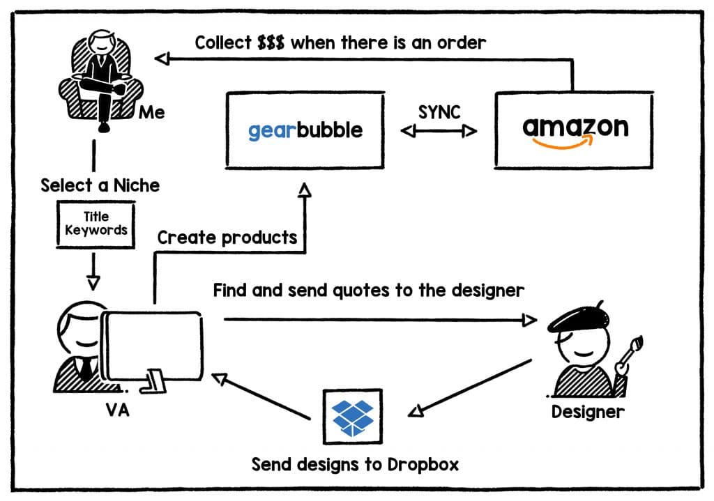 After that, the VA will use the designs to create the products in GearBubble and upload them to Amazon. You can send him or her the workflow sheet so they can follow the process.