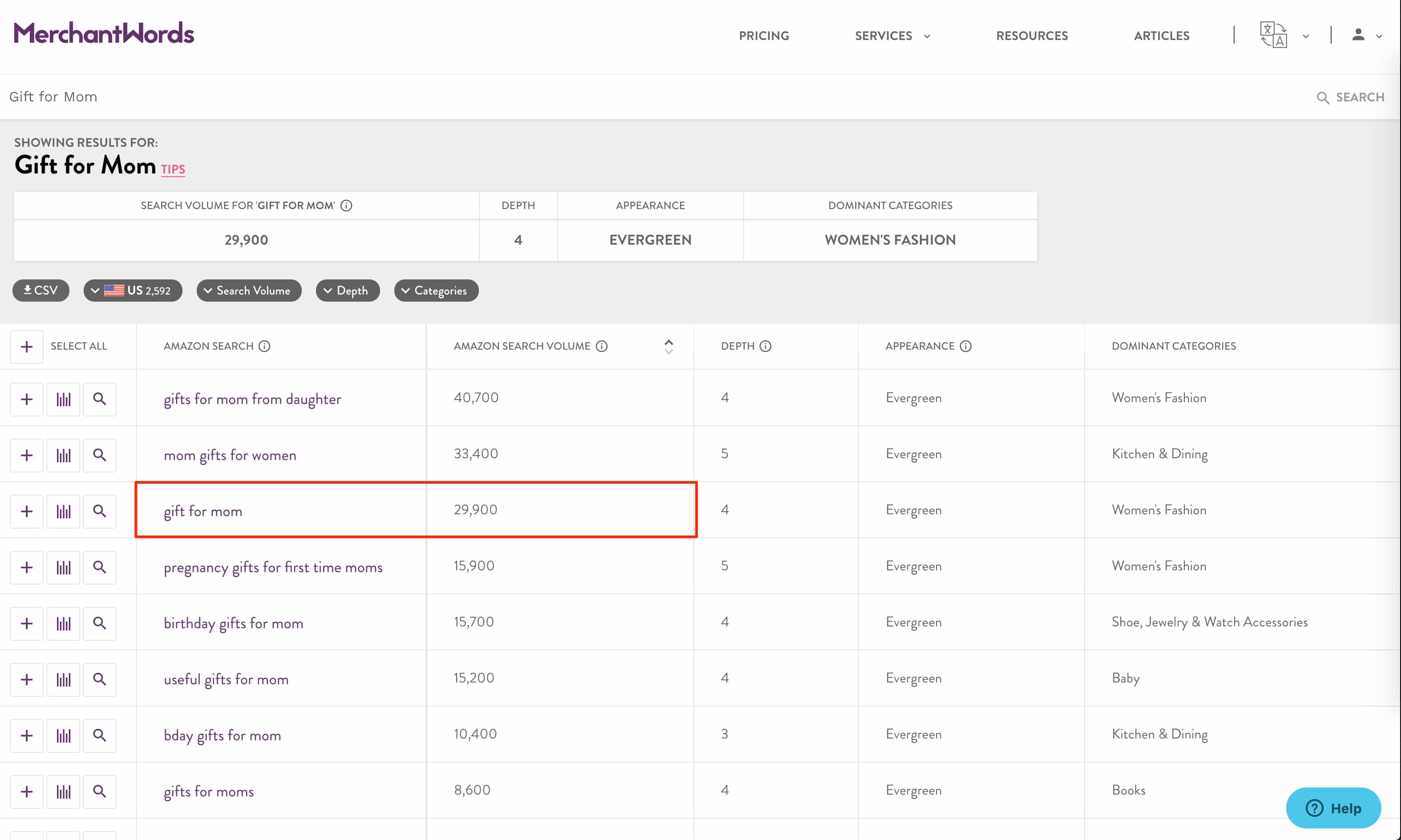 Okay, let’s check the search volume of the keyword “Gift for Mom” and “Mother’s day Present Idea” which are the keywords that most products have.