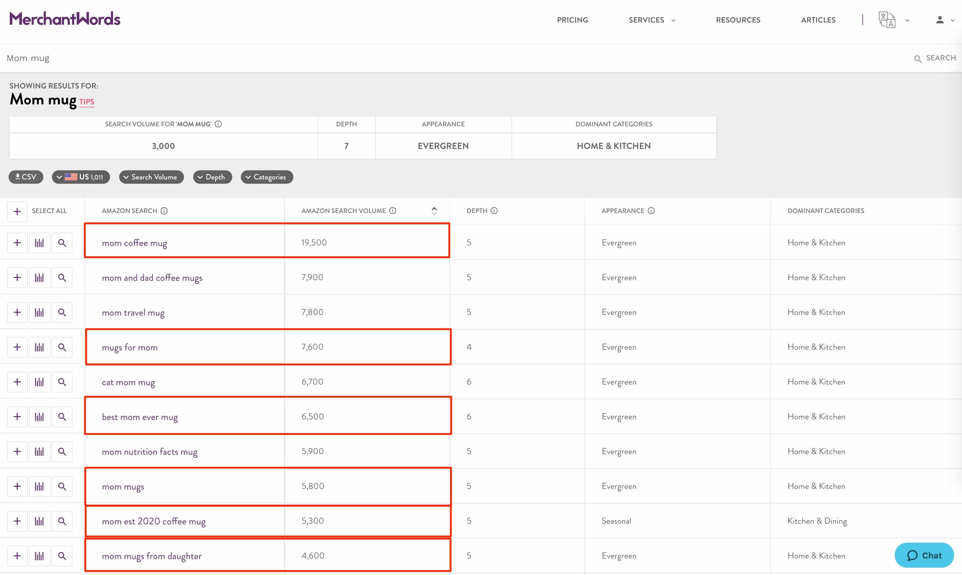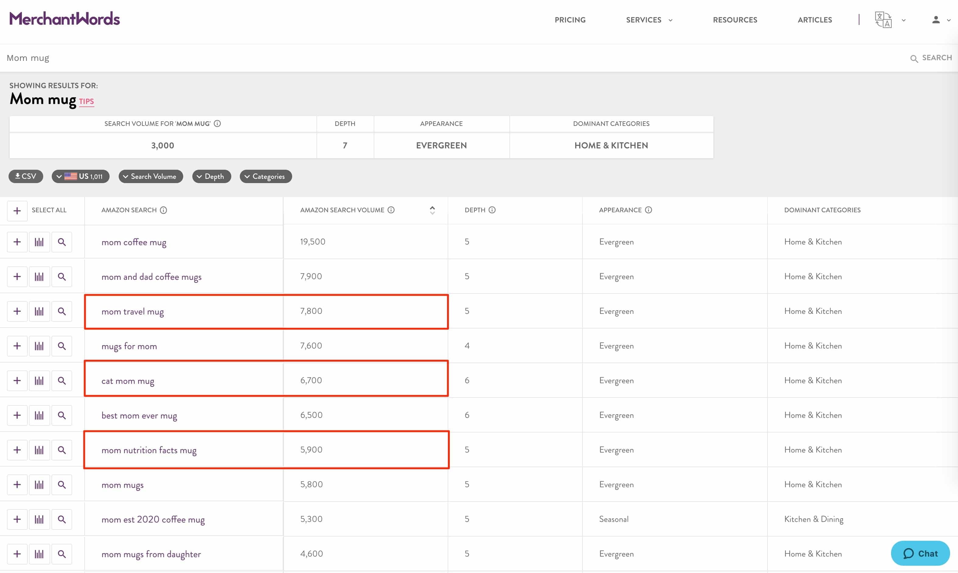 Okay, let try to check the search volume of the keyword “Mom Mug” in MerchantWords.