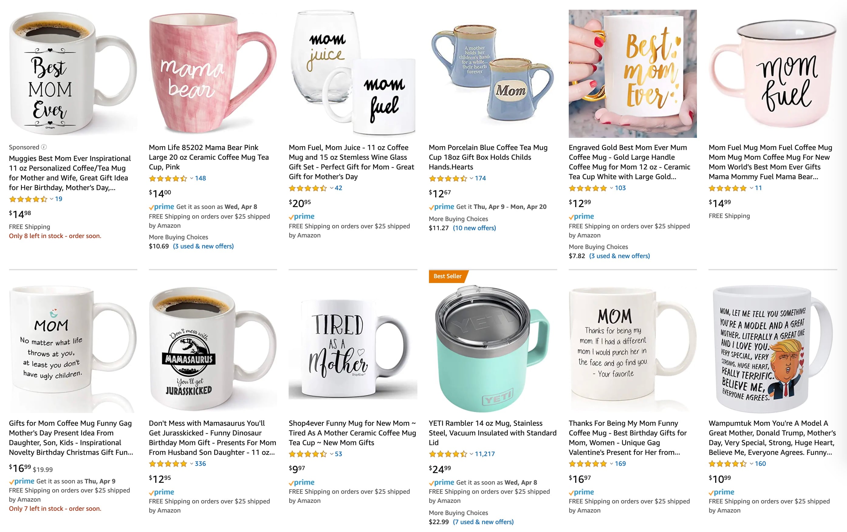 These are the examples of the products that have been sold really well during Mother’s Day.