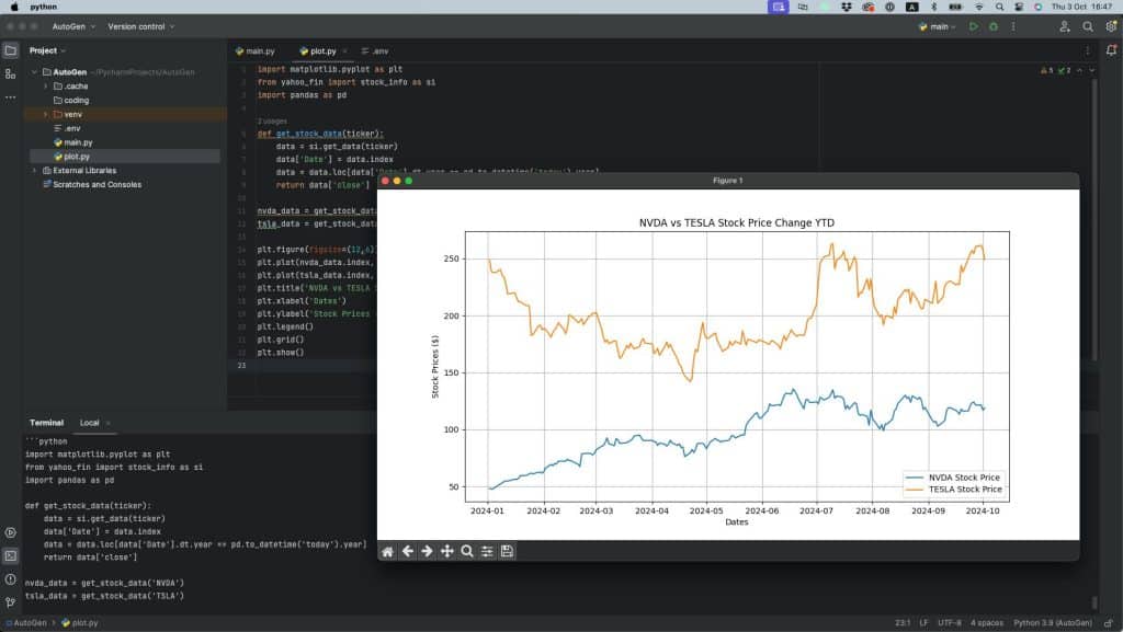 I used AI to plot the stock prices of NVDA and TESLA.