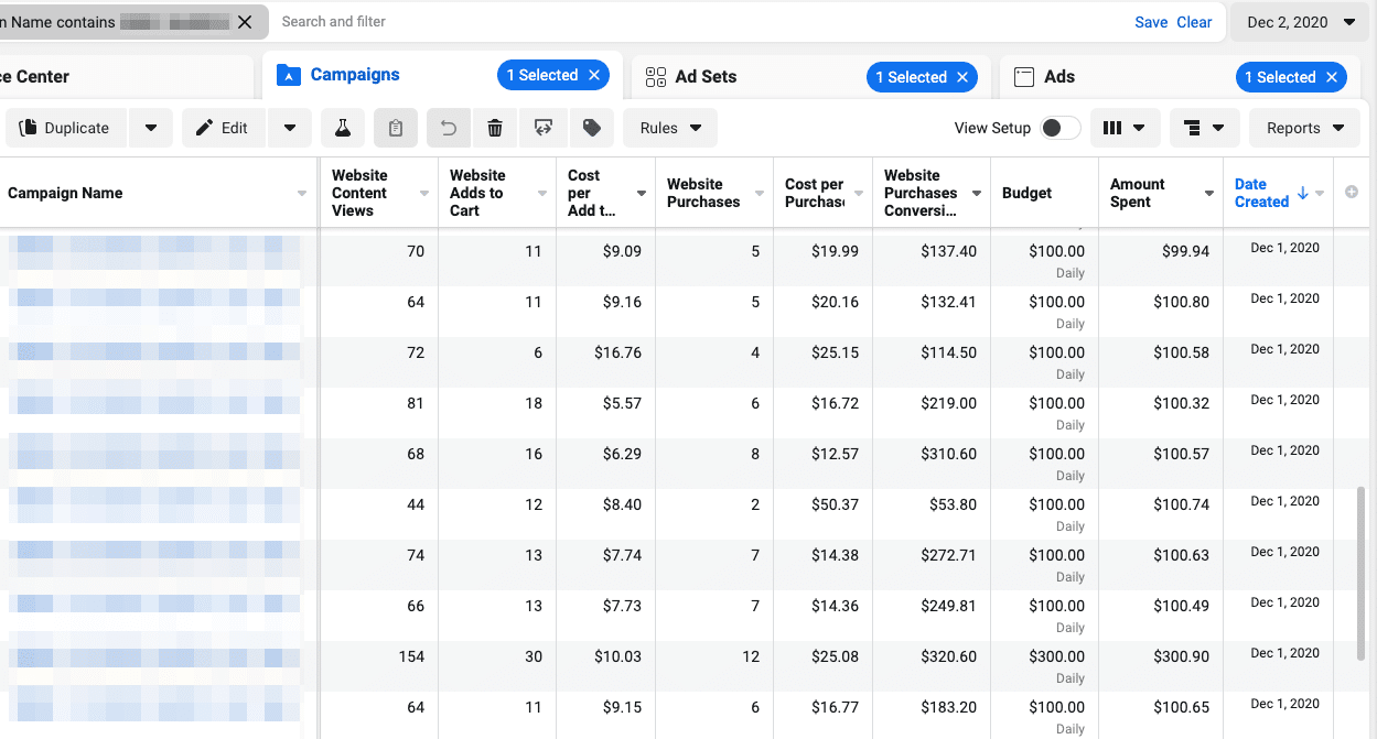 I created only two new campaigns for this product and set the daily budgets to $300.