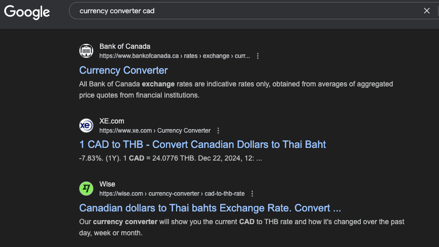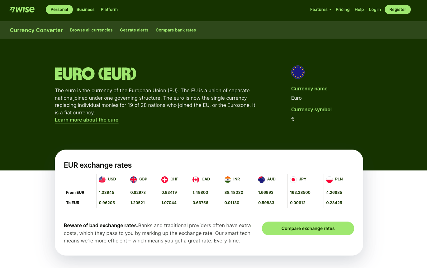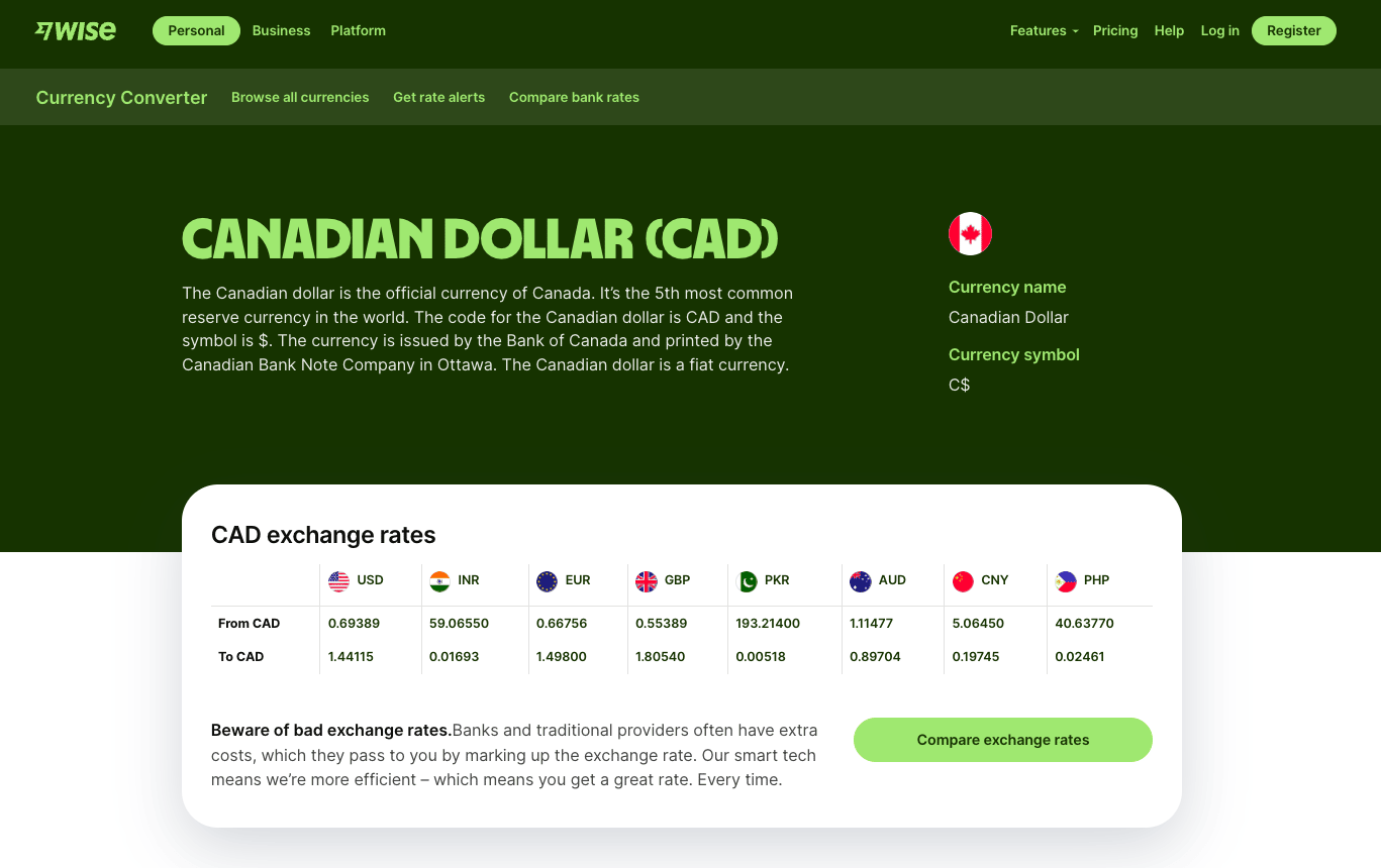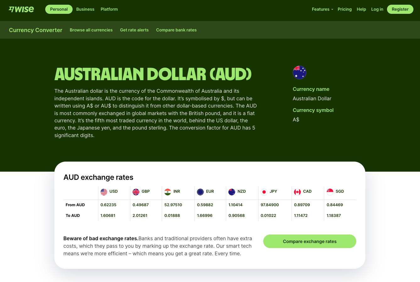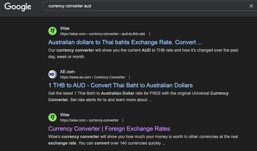 Wise owns all the long-tail keywords related to currency converters, all by using a simple template and swapping out the currency.
