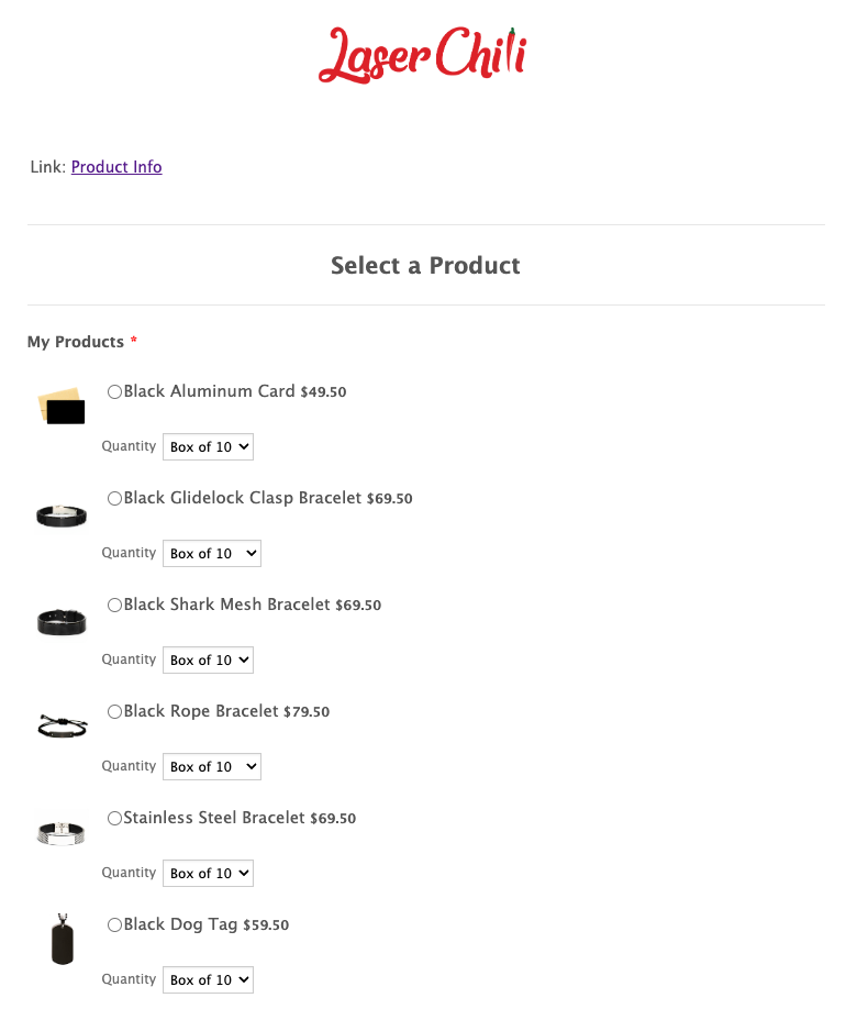 For example, at Laser Chili, you can start by placing an order for just 10 units.