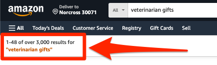 For example, when I search “veterinarian gifts,” I find there are about 4000 products related to this keyword.