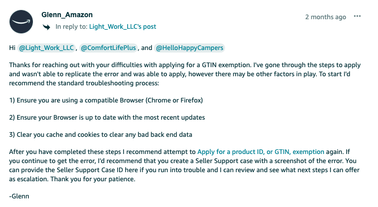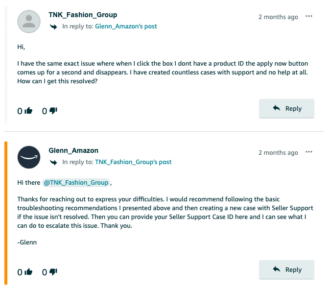 Then, here’s a little tip: you can also post about your problem on the Amazon Seller Forums.