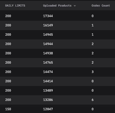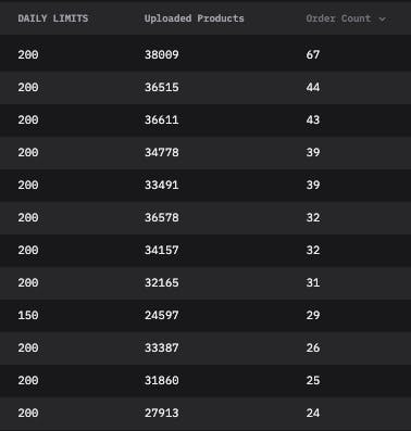 Another account uploaded around 2,000 products in about ten days and has made one order.