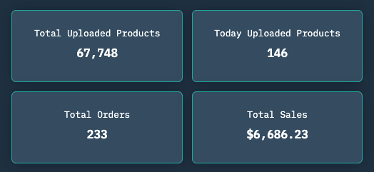 So far, PODtomatic has uploaded 67,748 products for me, leading to 233 sales worth about $6,686.23.
