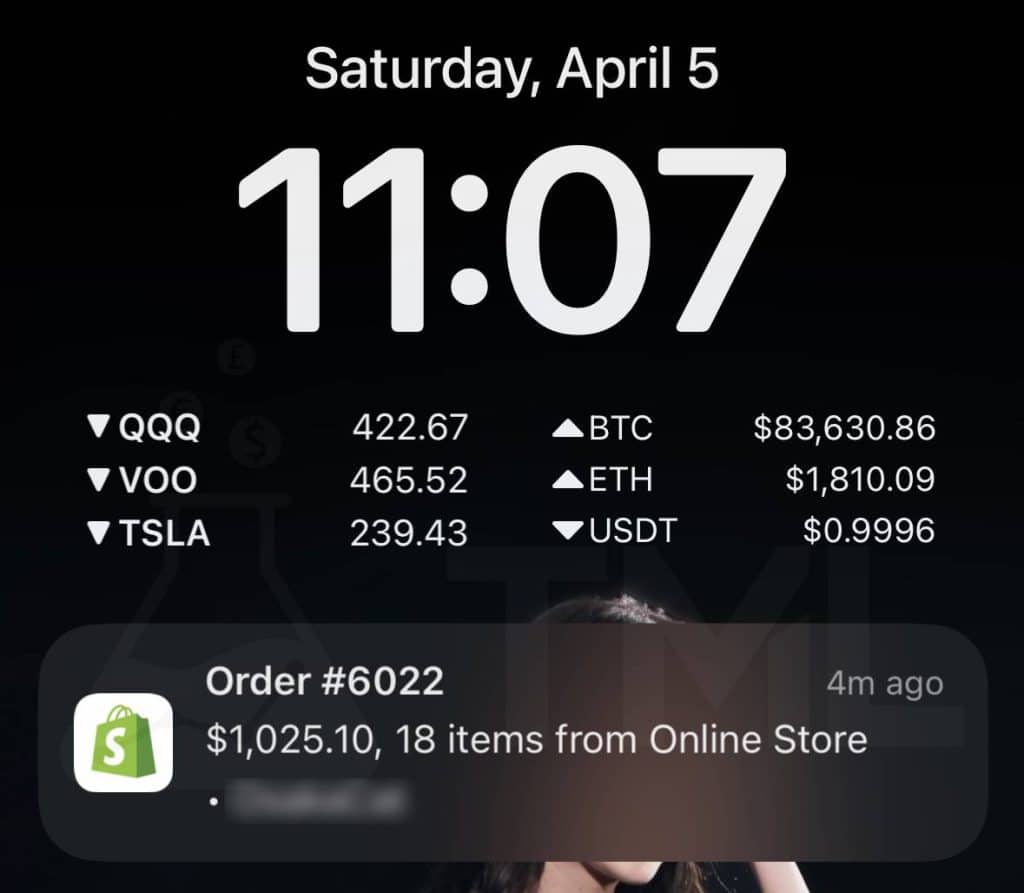 Speaking of big orders, I also got a $1,000 order from my Shopify store.