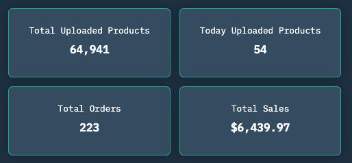 So far, PODtomatic has uploaded 64,941 products for me, leading to 223 sales worth about $6,439.97.