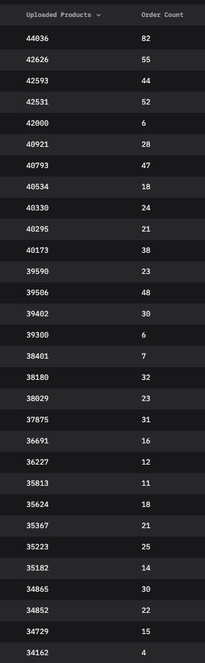 Most users sold around 25-30 products.